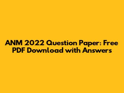 ANM 2022 Question Paper: Free PDF Download With Answers