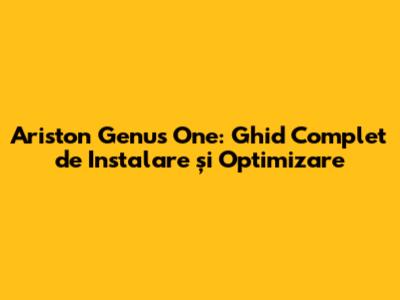 Ariston Genus One: Ghid Complet De Instalare Și Optimizare