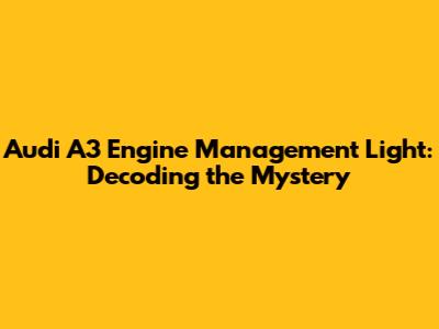Audi A3 Engine Management Light: What You Need To Know