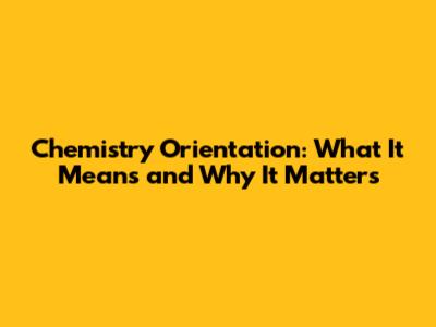 Chemistry Orientation: What It Means And Why It Matters