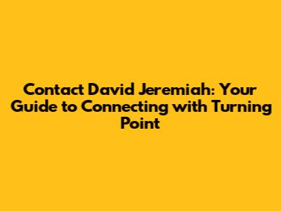 Unveiling the Ways to Contact Turning Point and David Jeremiah