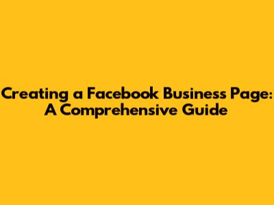Creating A Facebook Business Page: A Comprehensive Guide