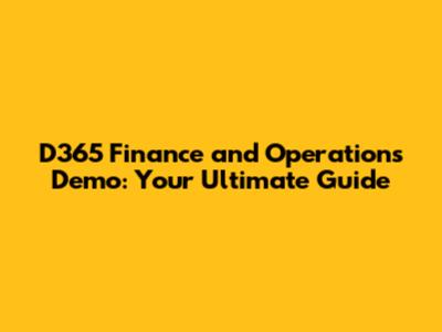 D365 Finance And Operations Demo: Your Ultimate Guide