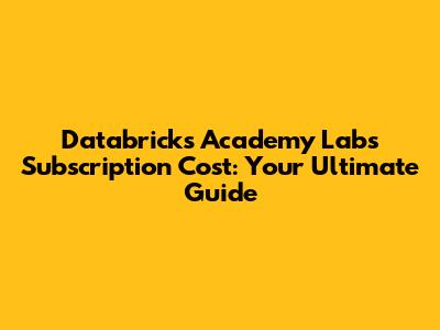 Databricks Academy Labs: Costs, Benefits, And More!