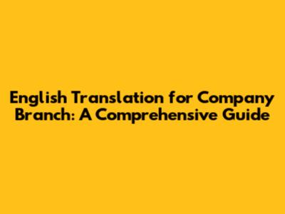 English Translation For Company Branch: A Comprehensive Guide