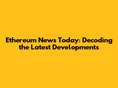 Ethereum News Today: What You Need To Know
