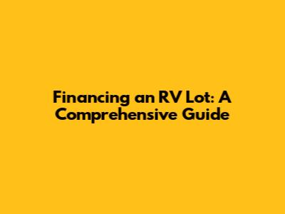 Financing An RV Lot: A Comprehensive Guide