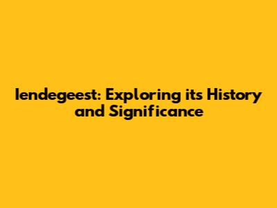 Iendegeest: Exploring Its History And Significance