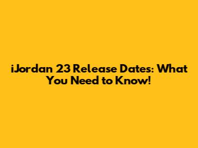 IJordan 23 Release Dates: What You Need To Know!
