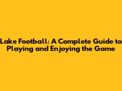 Lake Football: A Complete Guide To Playing And Enjoying The Game