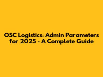 OSC Logistics: Admin Parameters For 2025 - A Complete Guide
