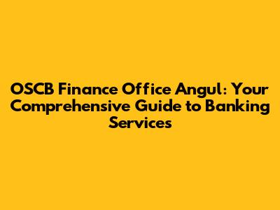 OSCB Finance Office Angul: Your Guide To Banking Services