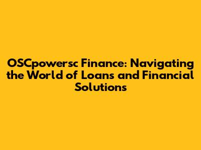 OSCpowersc Finance: Your Guide To Loans & Financial Solutions