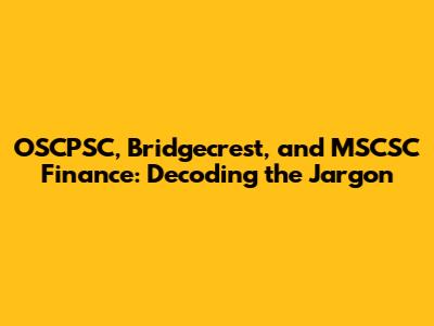 OSCPSC, Bridgecrest, And MSCSC Finance: Decoding The Jargon