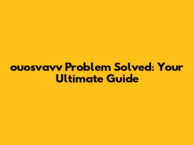 Ouosvavv Problem Solved: Your Ultimate Guide