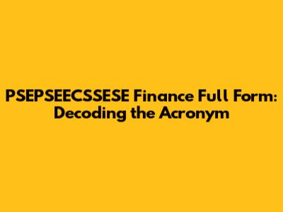 PSEPSEECSSESE Finance Full Form: Decoding The Acronym