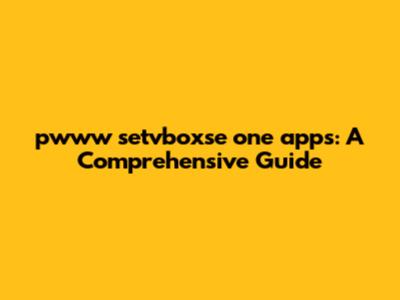 Pwww Setvboxse One Apps: A Comprehensive Guide
