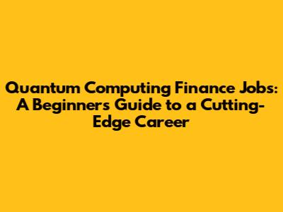 Quantum Computing Finance Jobs: A Guide For Beginners