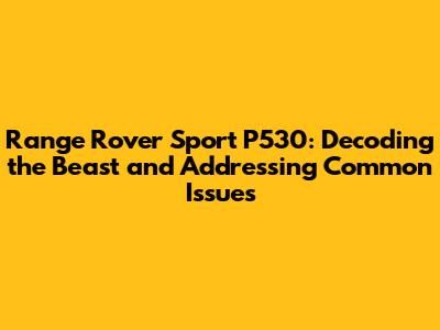 Hey everyone, let's dive into the world of the Range Rover Sport P530! This is one seriously impressive machine, and if you're lucky enough to own one, or are considering taking the plunge, you're in for a treat. But, like any complex piece of machinery, the P530, while offering a luxurious and high-performance driving experience, can sometimes throw a few curveballs. So, we're going to break down everything you need to know about the Range Rover Sport P530, covering its strengths, potential weaknesses, and most importantly, how to tackle those pesky issues that might pop up. We'll be focusing on the P530 specifically, so you get the most relevant info. Buckle up, and let's get started!