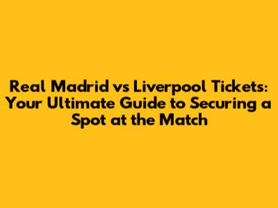 Real Madrid Vs Liverpool Tickets: Your Ultimate Guide