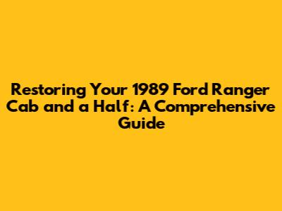 Hey guys, if you're like me, you've got a soft spot for classic trucks, and the 1989 Ford Ranger Cab and a Half definitely fits the bill. There's just something undeniably cool about these old Rangers, you know? They're tough, reliable, and have that vintage charm that's hard to resist. But if you're here, chances are you've got one, or you're thinking about getting one, and you're probably wondering how to bring it back to its former glory. Well, you've come to the right place! This guide is all about restoring your 1989 Ford Ranger Cab and a Half, from the bodywork to the engine, and everything in between. We'll cover everything you need to know to get your Ranger looking and running its best, and trust me, it's a rewarding project. Let's dive in, shall we?