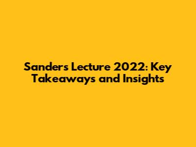 Sanders Lecture 2022: Key Takeaways And Insights