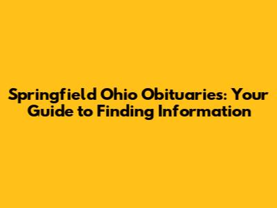 Hey there, folks! Ever found yourself searching for information about someone who's passed away in Springfield, Ohio? It can be a tough time, and navigating the world of obituaries can feel a bit overwhelming. But don't worry, I'm here to walk you through it. This guide is all about helping you find Springfield Ohio obituaries and understand how to access the information you need during a difficult time. We'll explore where to look, what to expect, and how to make the process a little easier. So, grab a cup of coffee, and let's dive in!