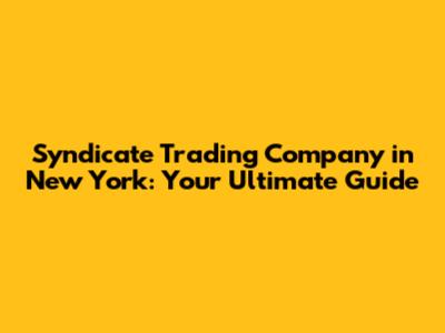 Syndicate Trading: Your NYC Guide