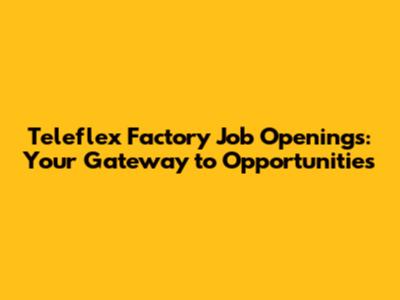 Teleflex Factory Job Openings: Your Gateway To Opportunities