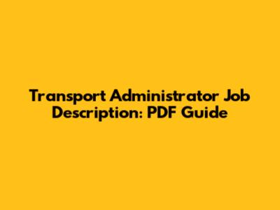 Transport Administrator Job Description: PDF Guide