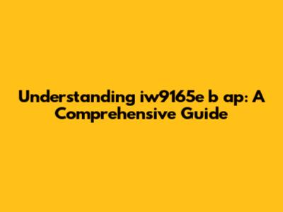 Understanding Iw9165e B Ap: A Comprehensive Guide