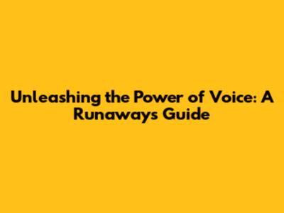 Unleashing The Power Of Voice: A Runaway's Guide