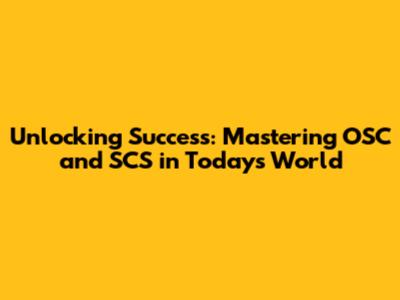 Unlocking Success: Mastering OSC And SCS In Today's World