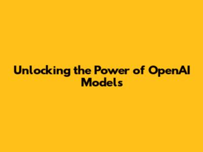 Unlocking The Power Of OpenAI Models