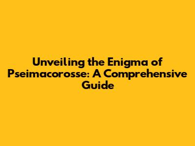 Unveiling The Enigma Of Pseimacorosse: A Comprehensive Guide