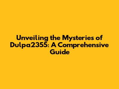 Unveiling The Mysteries Of Dulpa2355: A Comprehensive Guide
