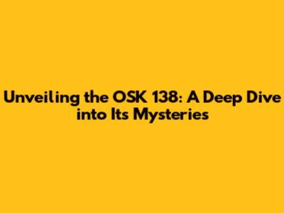 Unveiling The OSK 138: A Deep Dive Into Its Mysteries
