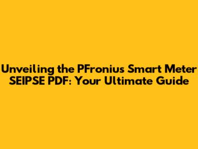 Unveiling The PFronius Smart Meter SEIPSE PDF: Your Ultimate Guide