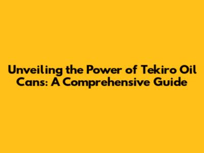 Unveiling The Power Of Tekiro Oil Cans: A Comprehensive Guide