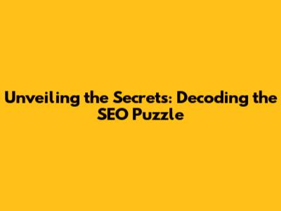 Unveiling The Secrets: Decoding The SEO Puzzle
