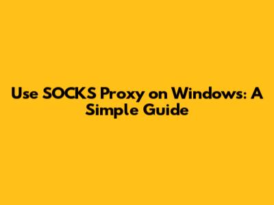 Use SOCKS Proxy On Windows: A Simple Guide