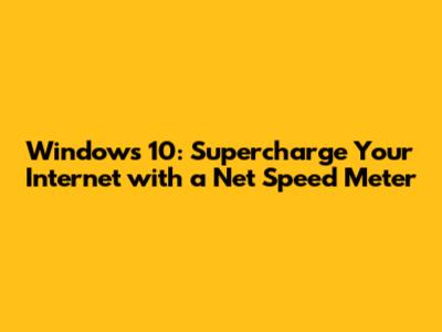 Windows 10: Boost Your Internet Speed With A Net Speed Meter